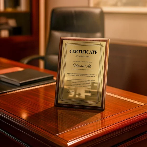- Material: Wood | Backside: Metal Stand | Packaging: Wooden Box | Plaques Sizes: L | M | S